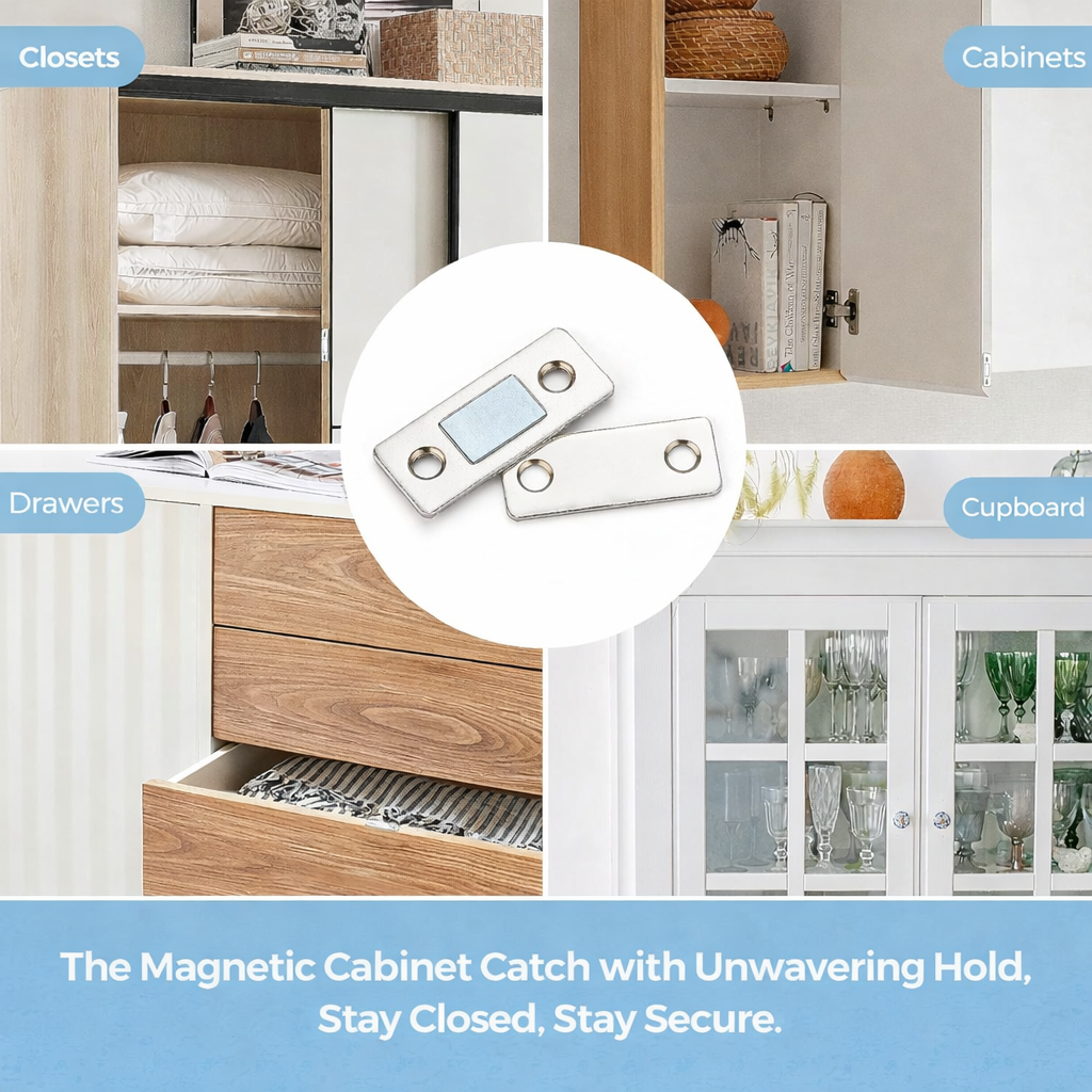 Secure loose cabinets instantly with these ultra-slim magnetic catches that fit seamlessly into tight gaps. This durable metal solution offers easy drill-free installation for a clean, flush finish.